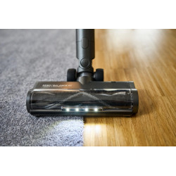 Silna szczotka SEBO z elastycznym przegubem pochylno-obrotowym, reflektorem LED i zabezpieczeniem zderzaka umożliwia łatwe czyszczenie – nawet pod meblami. Dzięki napędzanej silnikiem rolce szczotkowej z technologią Anti-Hair-Wrap, brud i włosy są skutecznie usuwane, zapewniając czystość nawet w trudno dostępnych miejscach.