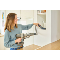 Ta dysza 2 w 1 ma uniwersalne zastosowanie: w wąskich przestrzeniach lub poprzez delikatne wysunięcie włosia do przodu, aby wyczyścić meble i inne powierzchnie.