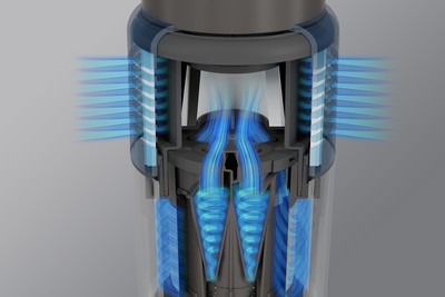 Sercem SEBO BALANCE A1 jest wielostopniowy cyklon, który wykorzystuje siłę odśrodkową do oddzielania cząstek zanieczyszczeń od zasysanego powietrza. Strumień powietrza jest wtłaczany w silny wir (cyklon). Nawet najmniejsze cząstki są wypychane z ogromną siłą i gromadzą się w pojemniku zbiorczym.